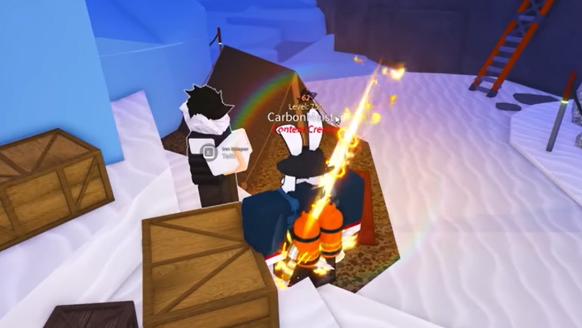 - Clear a short ice platform obby that collapses if you stand still too long.