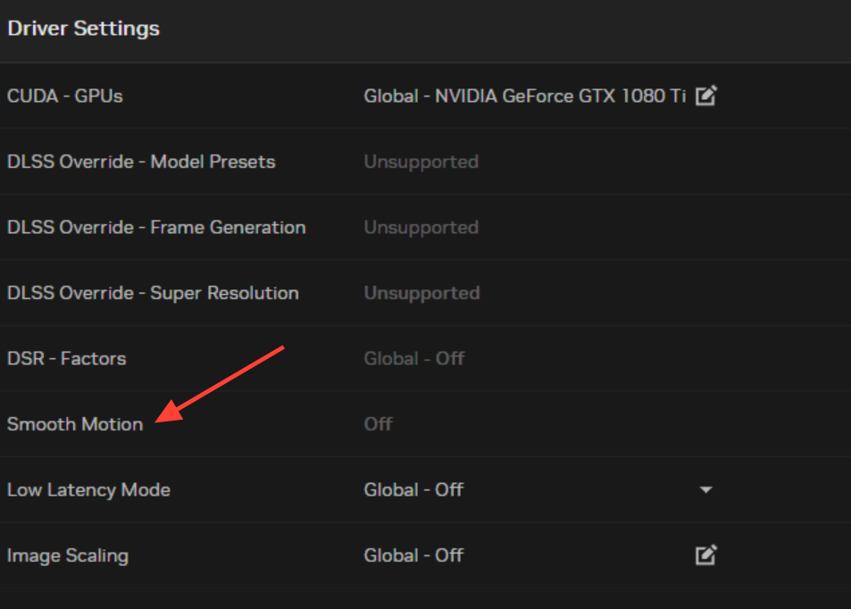 Disable NVIDIA Smooth Motion in the NVIDIA App. Open the NVIDIA App, go to graphics or global features, and toggle Smooth Motion to Off. Multiple players reported that crashes stopped entirely once Smooth Motion was disabled; some also set the “DLSS Override” control to “Let the 3D application decide” in the same app as a precaution. You’re on track if Smooth Motion shows Off and no per-app override is forcing it back on.