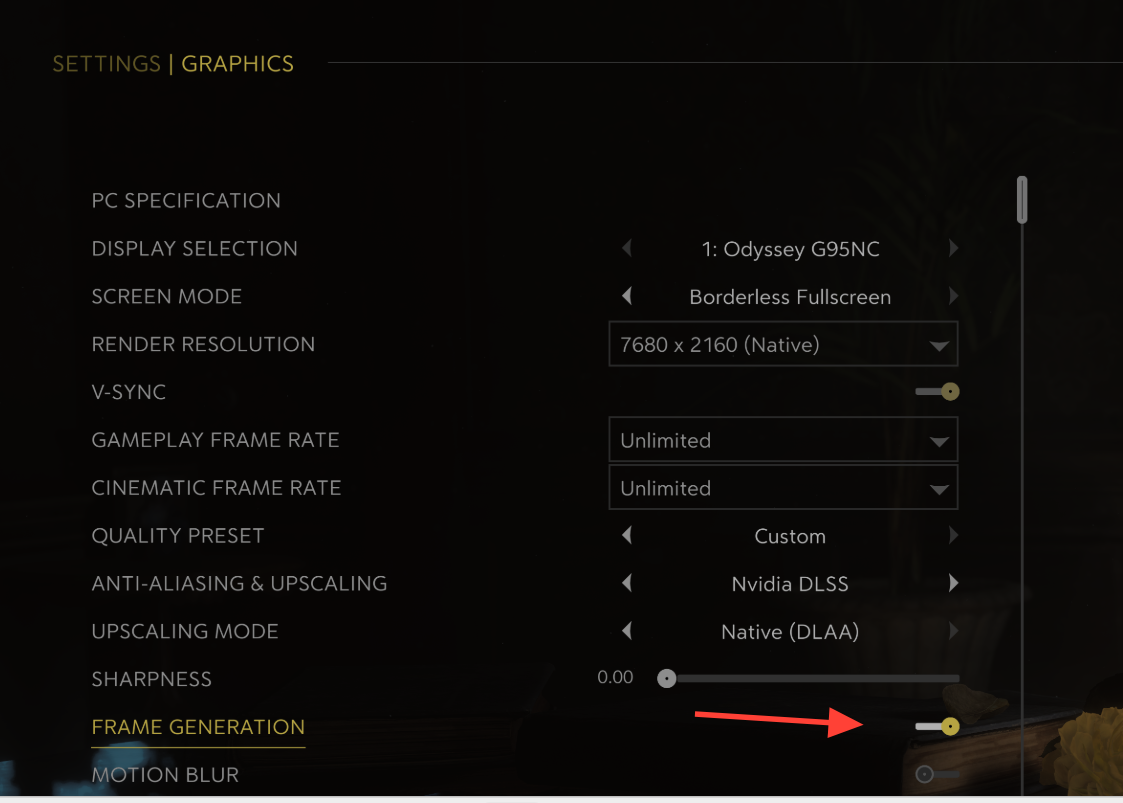 Turn off Frame Generation in the in-game Graphics settings. 2K notes this feature can cause cutscene hitching, skips, or instability in the current build. Disabling it reduces intermittent stutter during cinematics and lowers the likelihood of “GPU Crash dump Triggered” during heavy post-processing. You’re on track if Frame Generation shows Off before you return to gameplay.