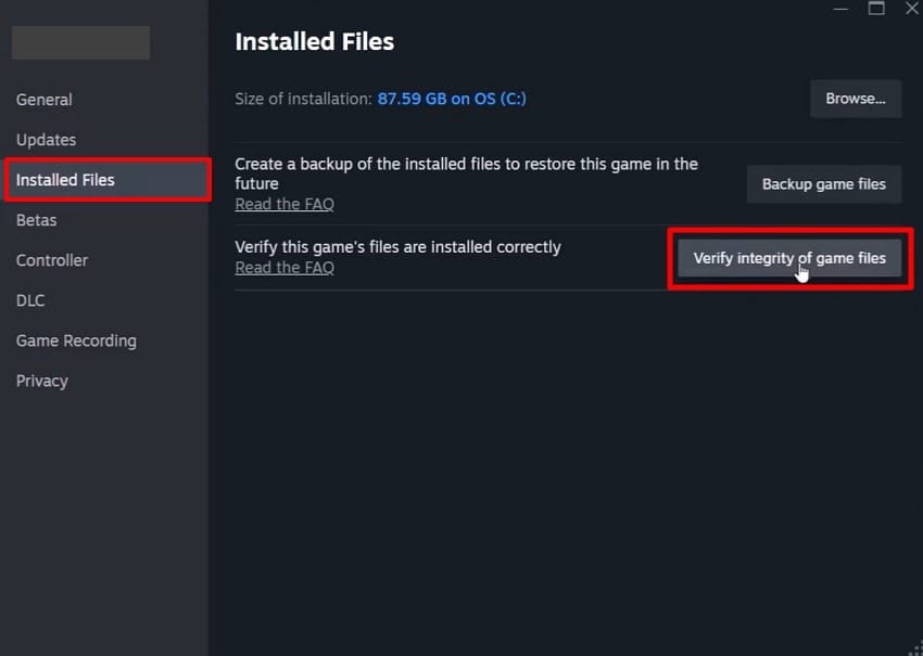 Method 5: Verify and repair game files in Steam