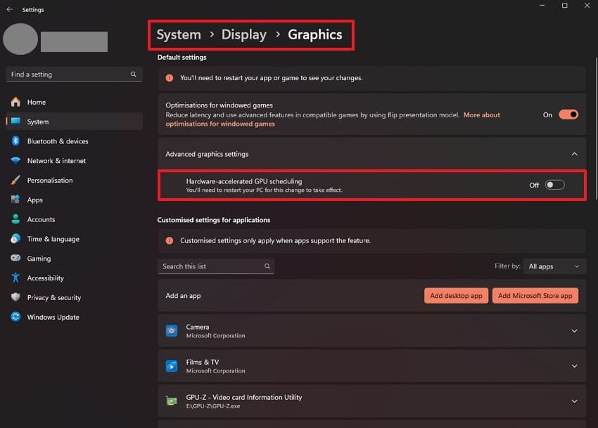 Disable Hardware-Accelerated GPU Scheduling (HAGS) in Windows. Go to Settings > System > Display > Graphics > Default graphics settings and set Hardware-accelerated GPU scheduling to Off. Reports indicate HAGS interacts poorly with this game and Smooth Motion; with both off, stability improves in combat, traversal, and cutscenes. You’re on track if the toggle is Off and Windows prompts for a restart.