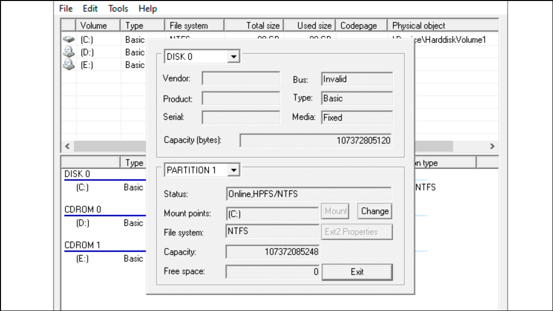 Step 2: Launch Ext2Fsd from the Windows Start menu. The tool will display all detected Linux partitions, including Ext2, Ext3, and Ext4 volumes.