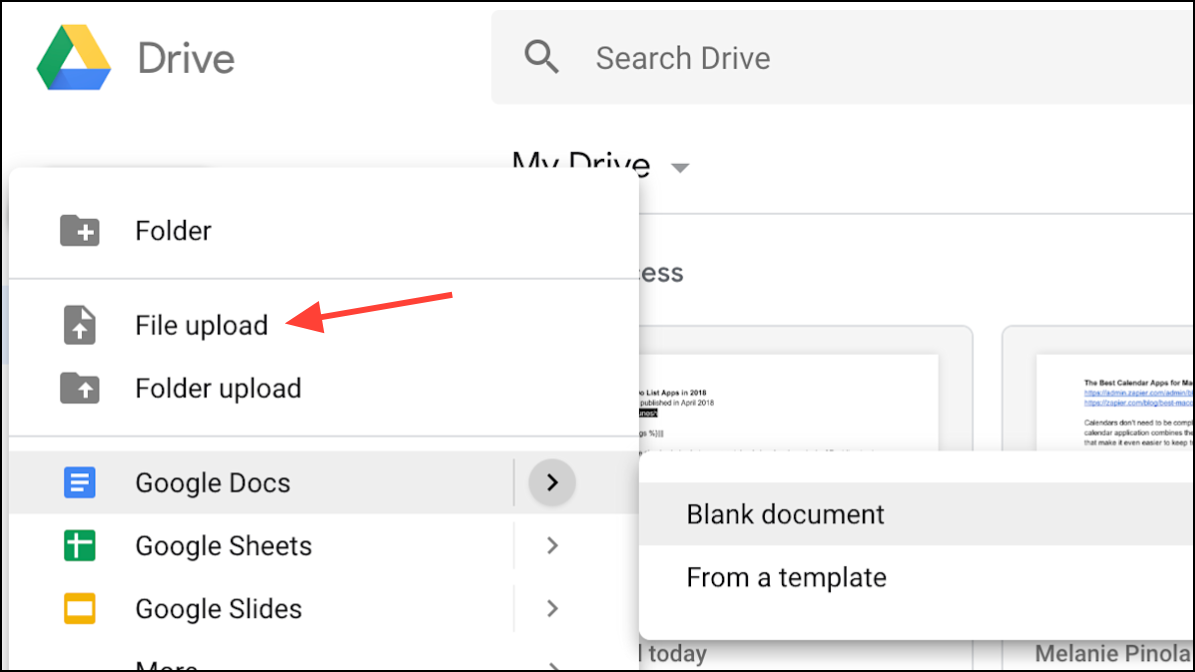 Step 1: Upload files to your preferred cloud storage provider from either operating system using a browser or the provider's app.