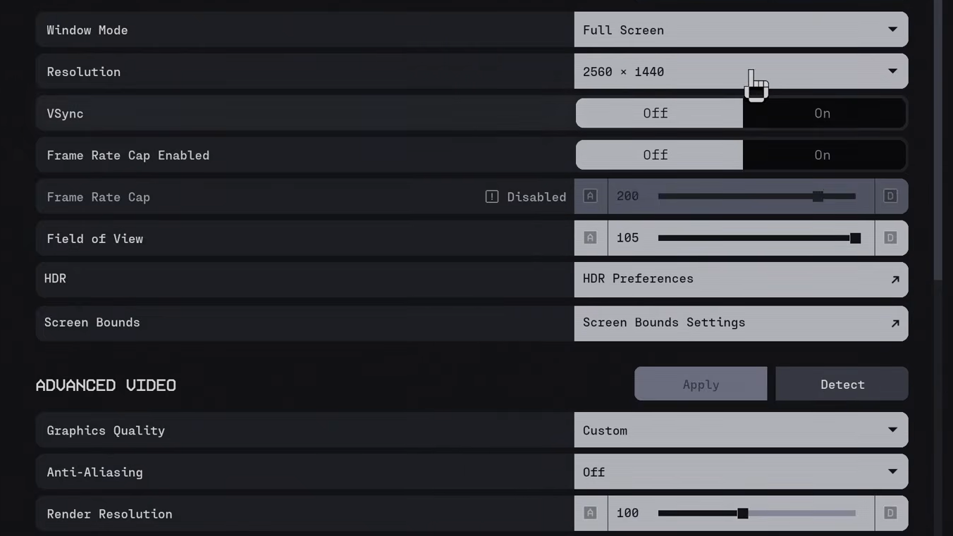 | Frame Rate Cap | Off | Lets the game run as fast as your hardware allows. |