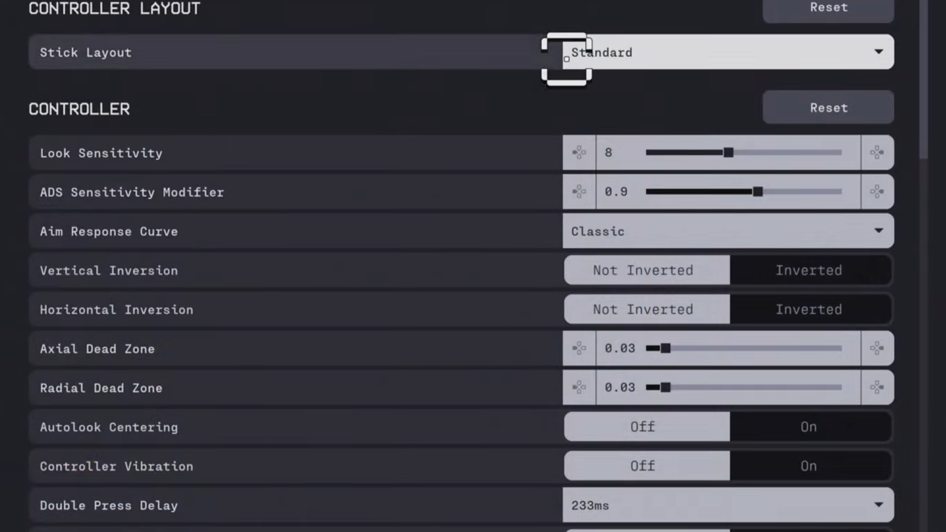 | Aim Response Curve | Linear | Removes extra ramp-up and makes stick motion easier to predict. |