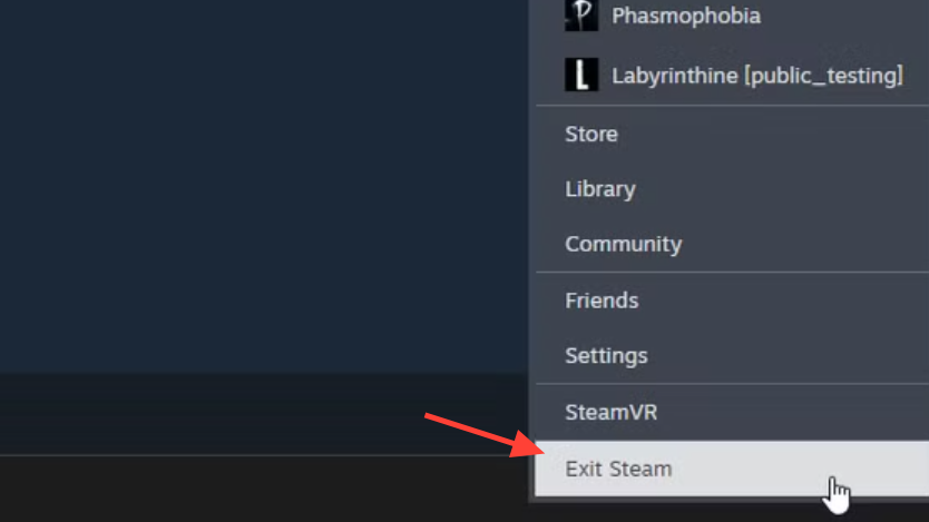 Step 2: Right-click the Steam icon in the tray and choose Exit. Wait a few seconds so the client fully shuts down.