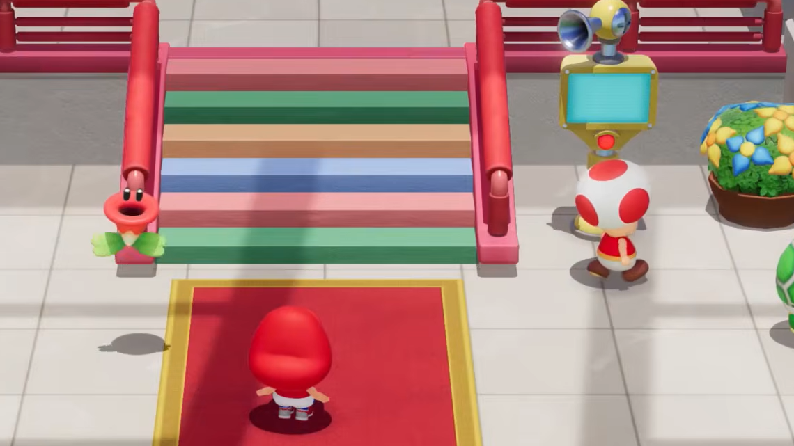 Tournament puts you through an eight-player bracket in singles or doubles, with play-by-play commentary from the Talking Flower introduced in Super Mario Bros. Wonder. The Talking Flower is enabled by default across most modes, but can be disabled everywhere except Tournament and Adventure.