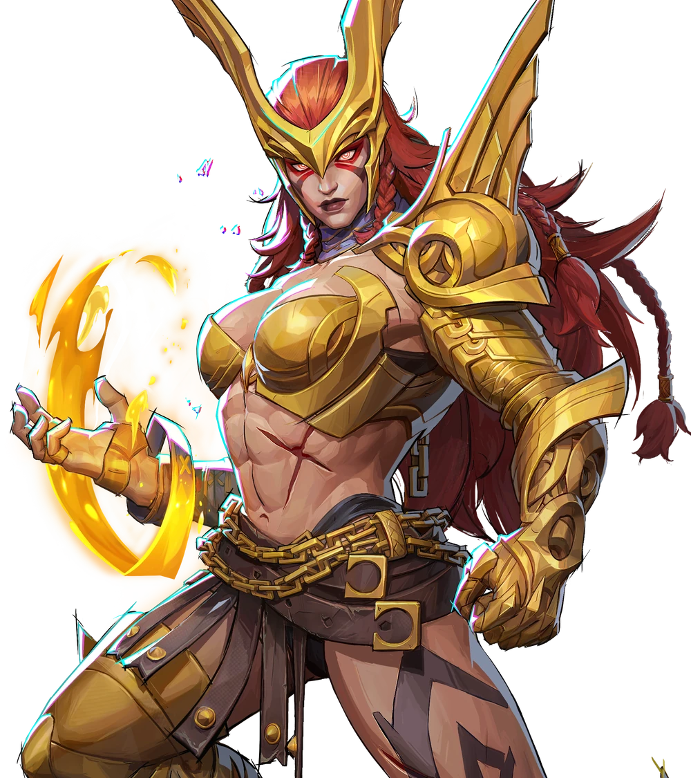 Angela can fly indefinitely and build an Attack Charge resource while moving or blocking damage. At full charge, her spear hits harder and can pop enemies upward. Diving with axes creates a ground zone that speeds allies and grants Bonus Health on hits, helping teams push or hold objectives.