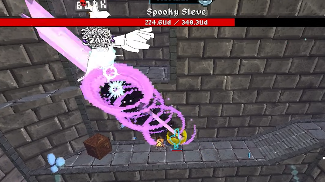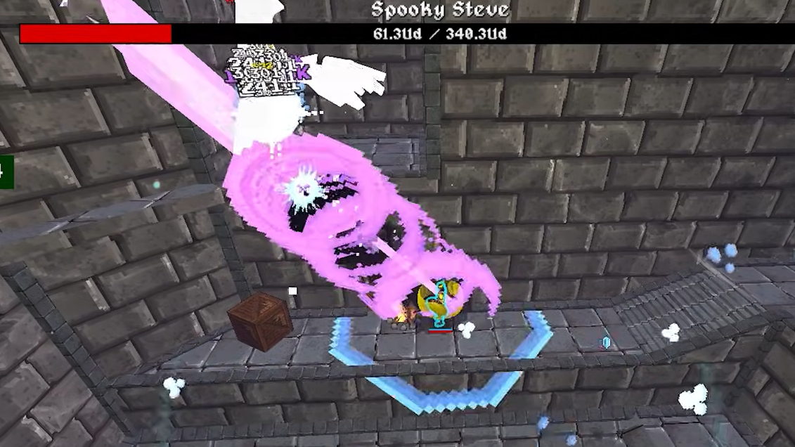 Spooky Steve’s health is so high that normal damage numbers might as well be cosmetic. The kill condition is a steady stream of executes from Dexecutioner while crowd control keeps him from ever reaching you.