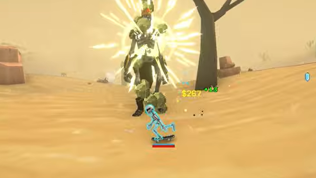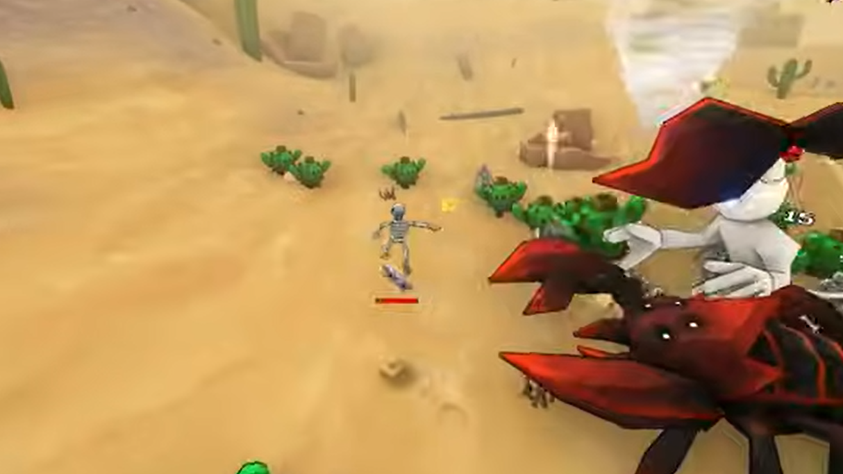Calcium’s Dad shares patterns with other Desert bosses. He raises damaging rocks from the ground and fires a red laser that sweeps across the arena. Use Calcium’s high movement speed to circle him and step out of telegraphed rock spawns while keeping a lane open to dodge the laser.
