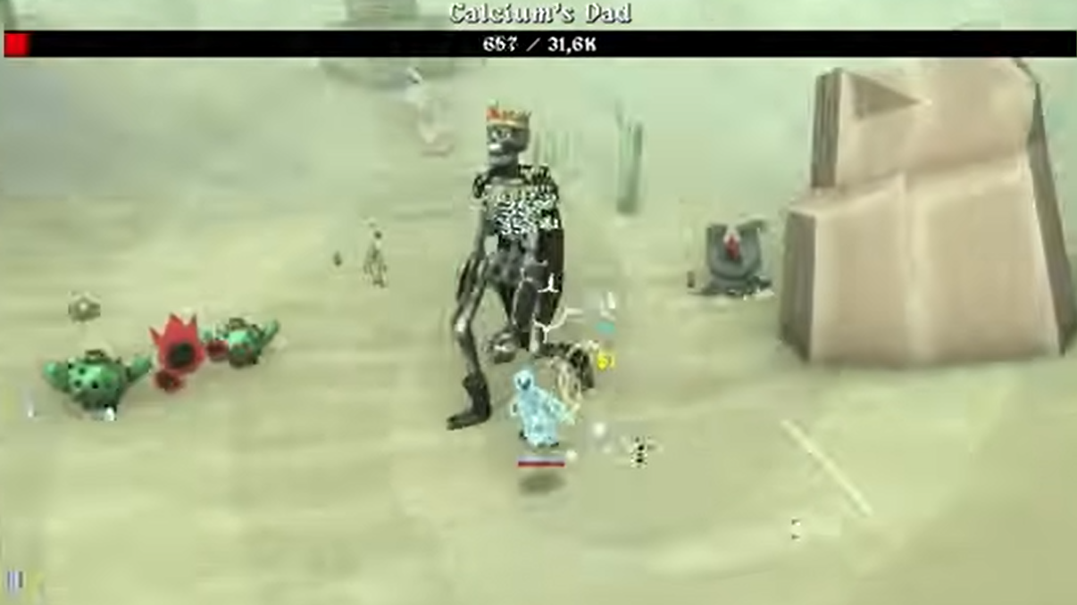 Step 8: Once the Red Ghost is down, a final marker leads you to a tall golden skeleton statue. Interact with the statue to summon the Undead Boss (Calcium’s Dad).