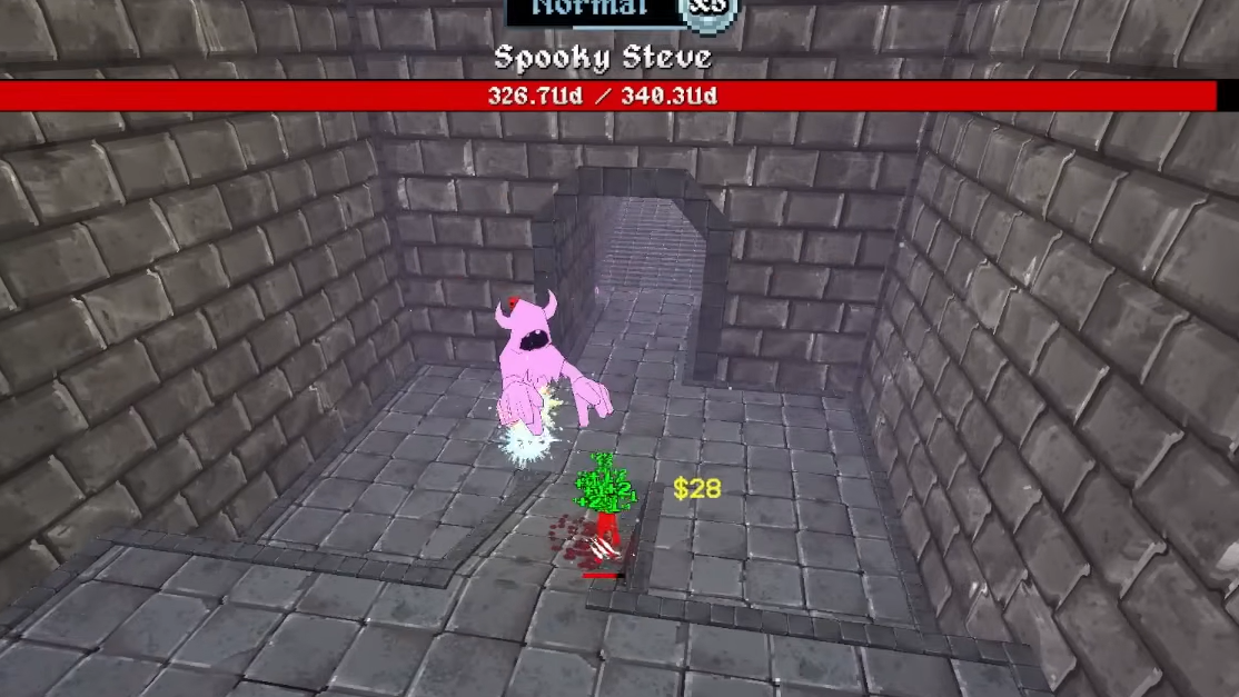 Spooky Steve is defined by an enormous health pool — around 340.3Ud — rather than intricate movement patterns. The fight becomes a test of sustained DPS and survivability rather than dodging a complex set of mechanics. Many successful runs involve standing in a relatively small area and letting your build do the work.