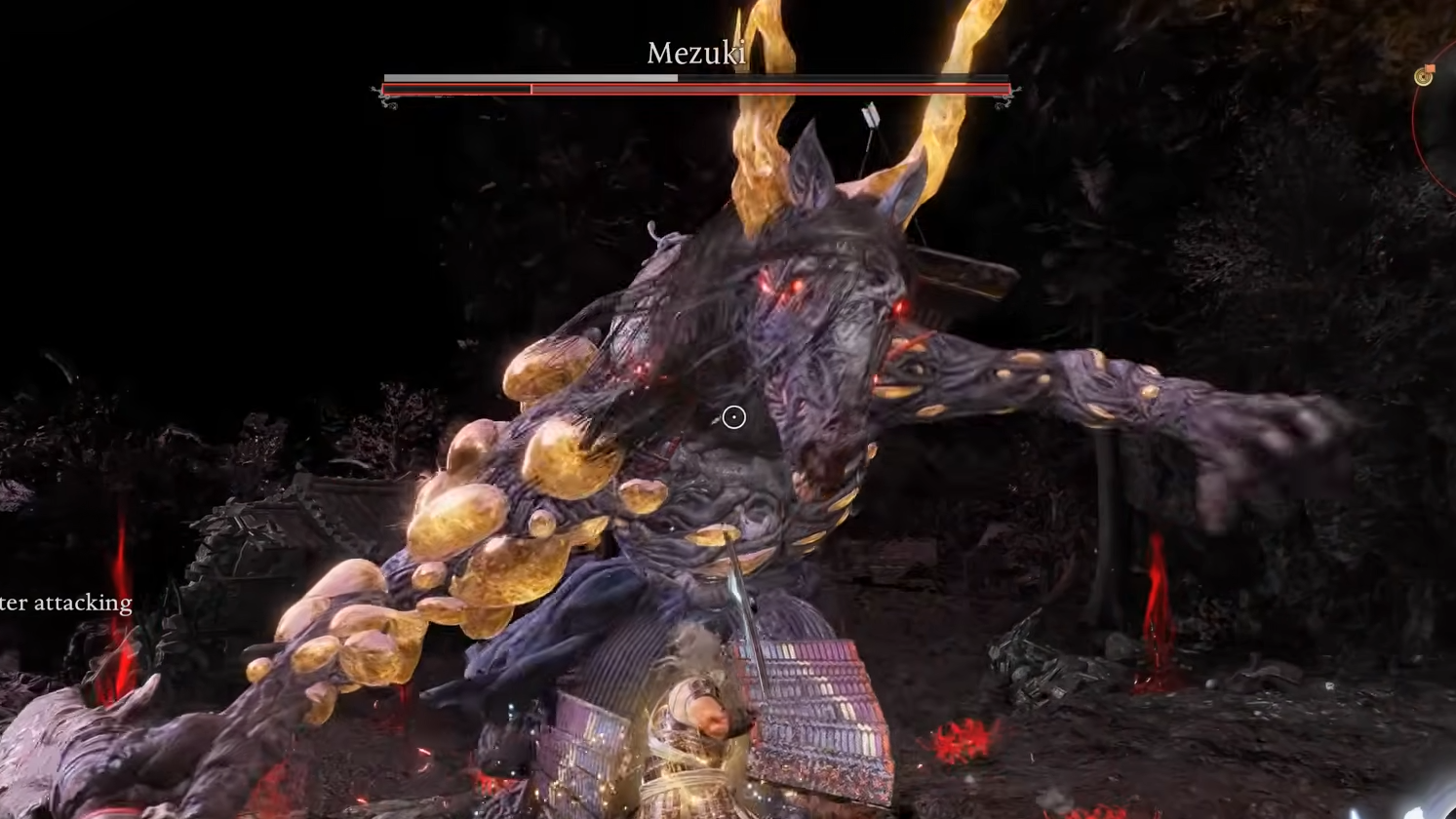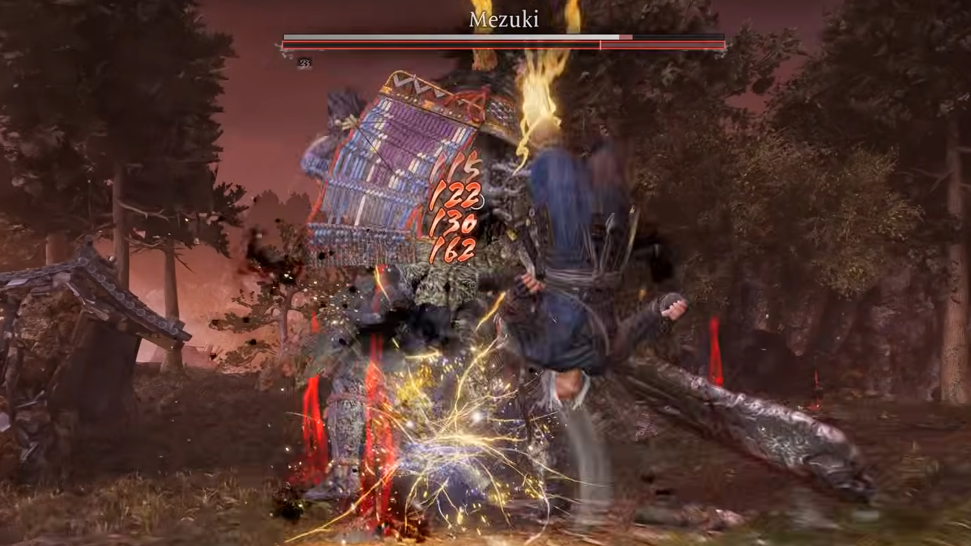 Mezuki is ultimately a patience check disguised as a boss fight. Its swings look intimidating, but nearly every attack has a clear visual tell and a generous dodge window. Buff your weapon with fire, stay disciplined about punishing recovery frames, nail the Burst Break on the red-aura charge, and you'll bring this horse-headed demon down without much trouble.