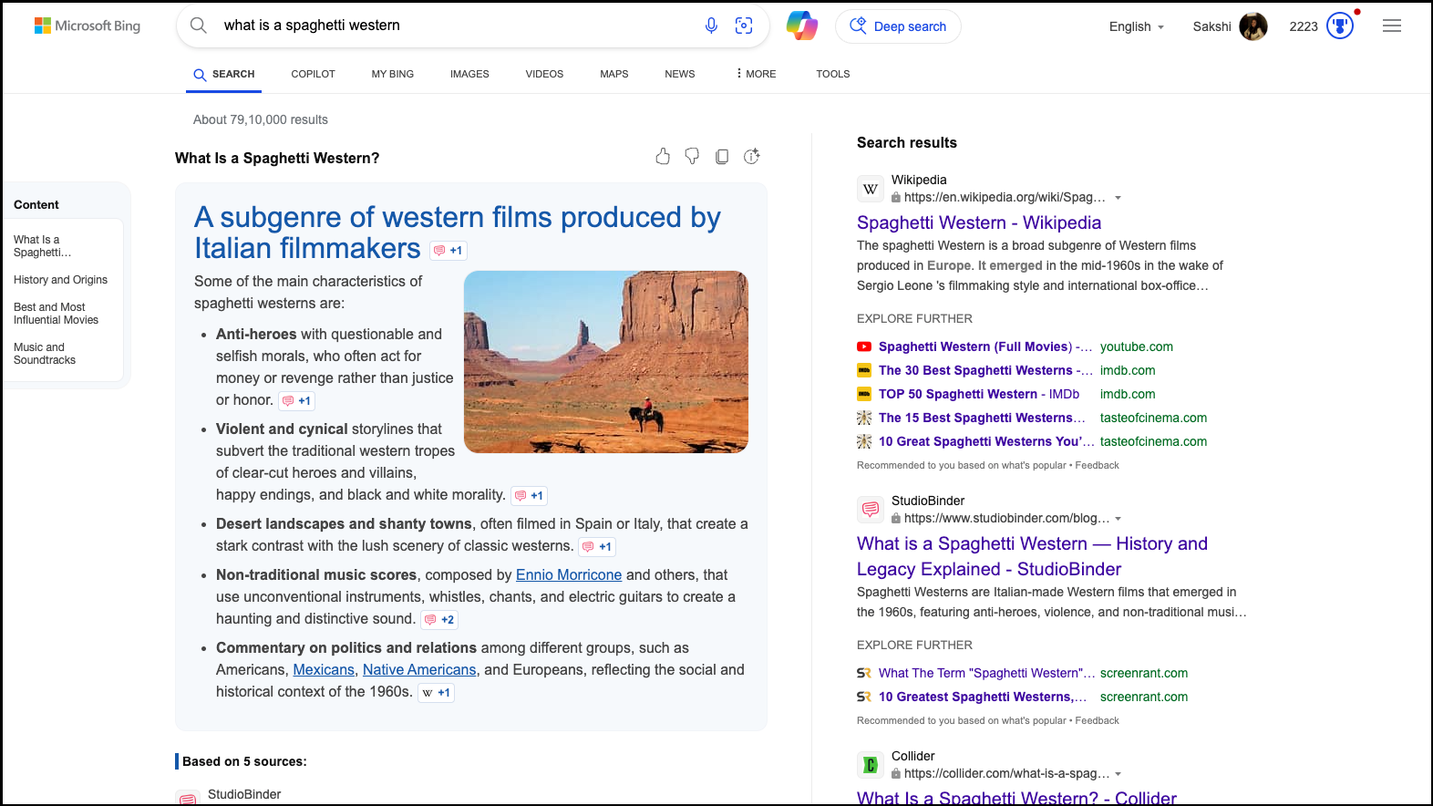The feature is currently only shipping to a small number of user queries. Users can get a taste of the feature by visiting the 'What is a spaghetti western' query on Bing where the generative search experience shows information about the genre with its history and origins, examples, etc. in the center and traditional search results are available on the right. It also features a document index for the result curated by the AI.