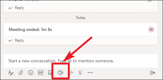 In the channel, go to the ‘New Post’ creation space at the bottom, and click on the ‘Meet now’ button (the video camera icon). Configure your audio and video settings, and click on ‘Meet now’ and the meeting will start on the channel. All members of the channel can join once a meeting has started.