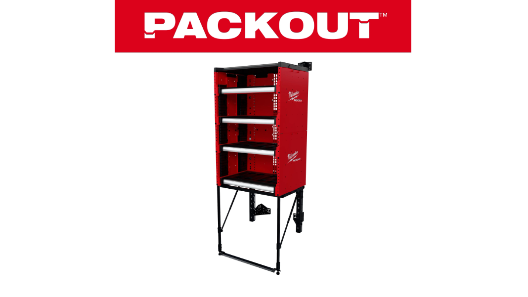 PACKOUT is Milwaukee Tool’s modular storage ecosystem. It’s built around interlocking cases, drawers, racks, totes, and soft bags that all clip together into a single stack, cart, wall system, or van install.
