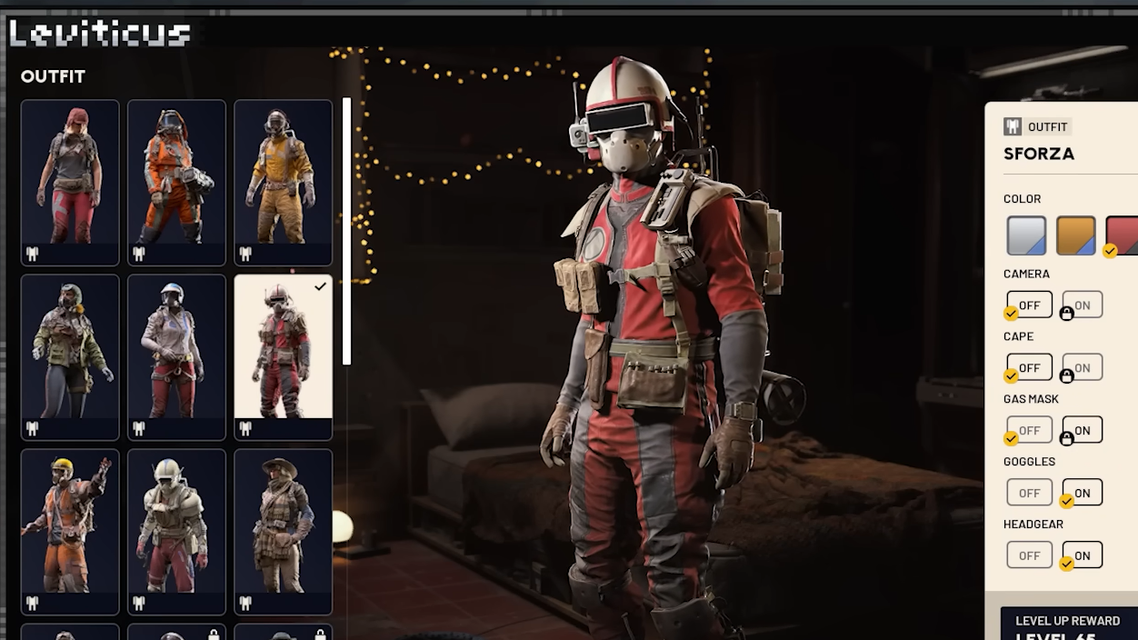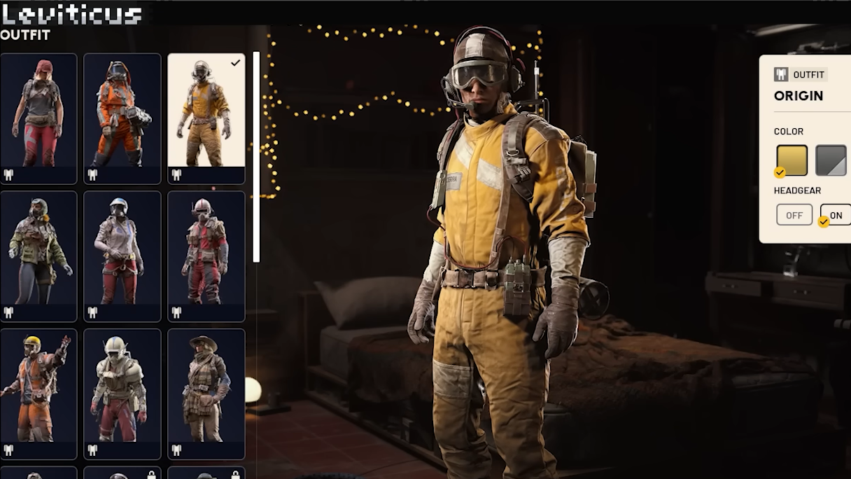 Cosmetics sit on top of that risk–reward loop. Full-body Outfits replace your character’s appearance and are treated as indivisible sets: you can’t mix and match parts like helmets or jackets. Many outfits come in different colorways and have toggleable add-ons that must be unlocked separately.