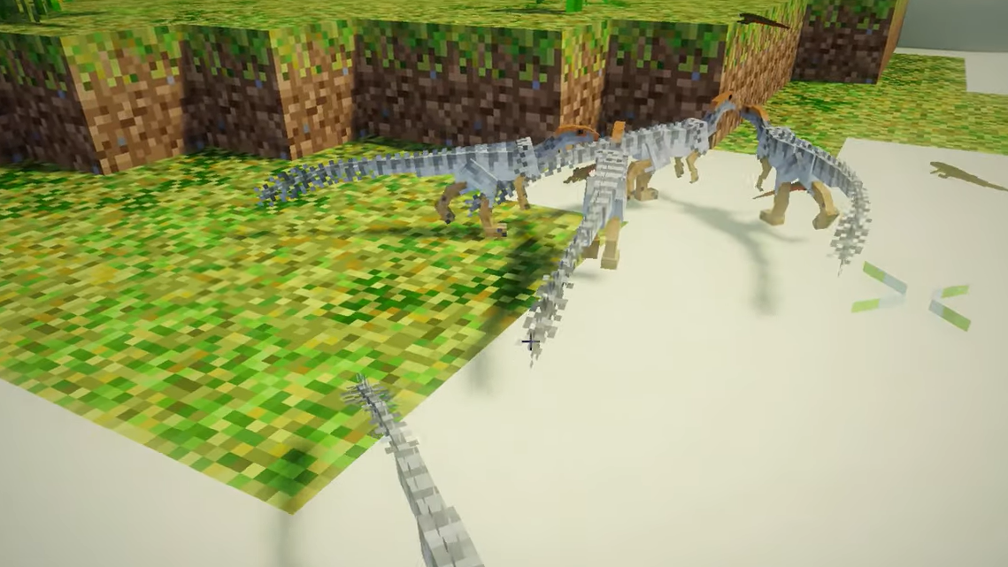 AlternaCraft leans into the movie fantasy of dinosaurs. It adds more than twenty unique species, including name‑recognizable giants such as Spinosaurus, Indominus Rex, Baryonyx, Indoraptor, and Gigantosaurus. The focus is squarely on highly detailed models and textures that look closer to cinematic designs than to vanilla cubes.