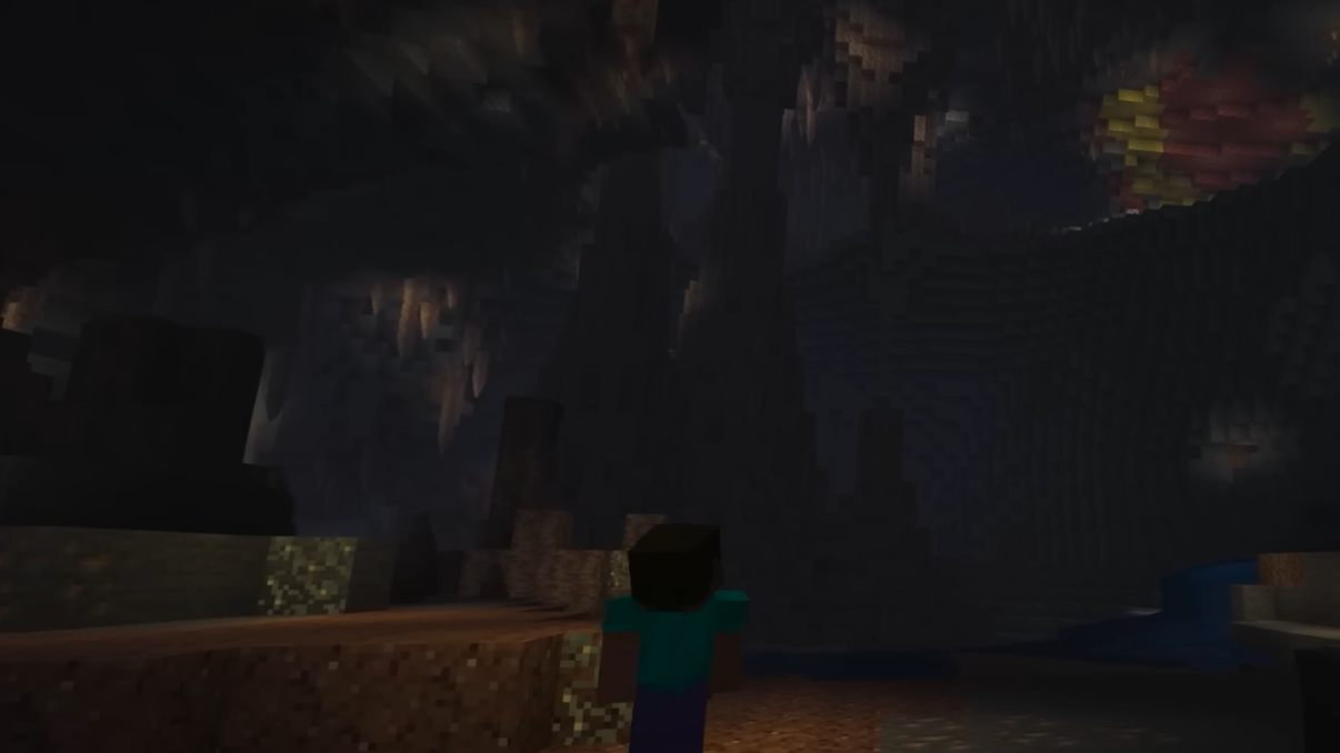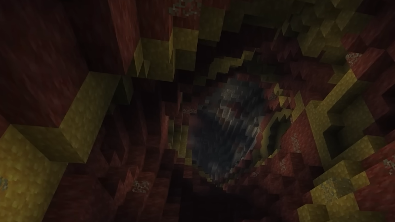 Sulfur caves generate underground and stand out immediately thanks to their warm red-and-yellow palette. The biome contains sulfur pools fed by a special block called potent sulfur. When potent sulfur sits underwater, it emits bubbles that turn into noxious gas particles at the surface. Any player or mob that enters water connected to potent sulfur receives the Nausea status effect, producing a disorienting, dizzying visual distortion.