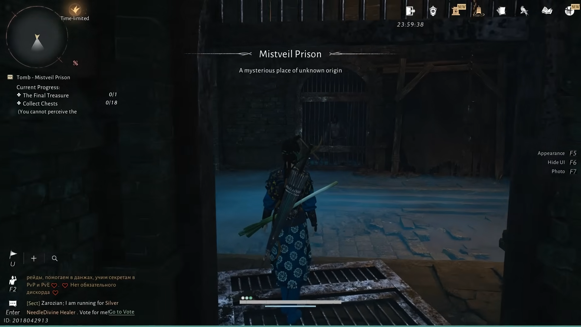 The dungeon also assumes you have already cleared Mist-Shrouded Prison, the earlier Divinecraft Dungeon in the same location. Mistveil Prison begins after you return and interact with the kneeling man at the elevator. Answering “I am not afraid” and then “Face the fear of the unknown” kills you on the spot, but instead of the usual “Heal” prompt, you receive a “Face your fears” option that starts Mistveil Prison and drops you into a cell.