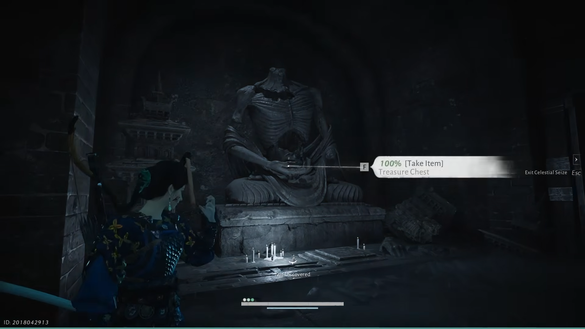 Step 5: Climb back up from the hanging cages, pass the broken wall entirely, and follow the archway to another ladder. At the top stands a headless statue. There is a pressure plate in front of it that triggers a projectile trap from behind. To grab the fourth chest from the statue’s lap without being hit, approach from the side by jumping onto the broken pillar and then onto the statue’s leg.