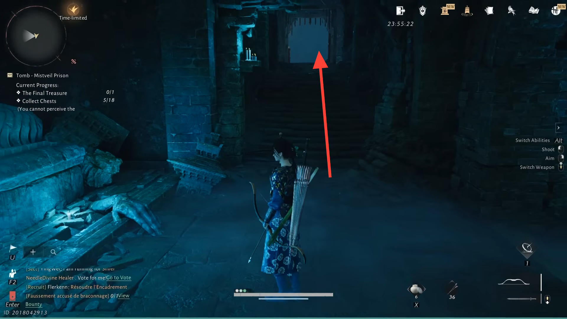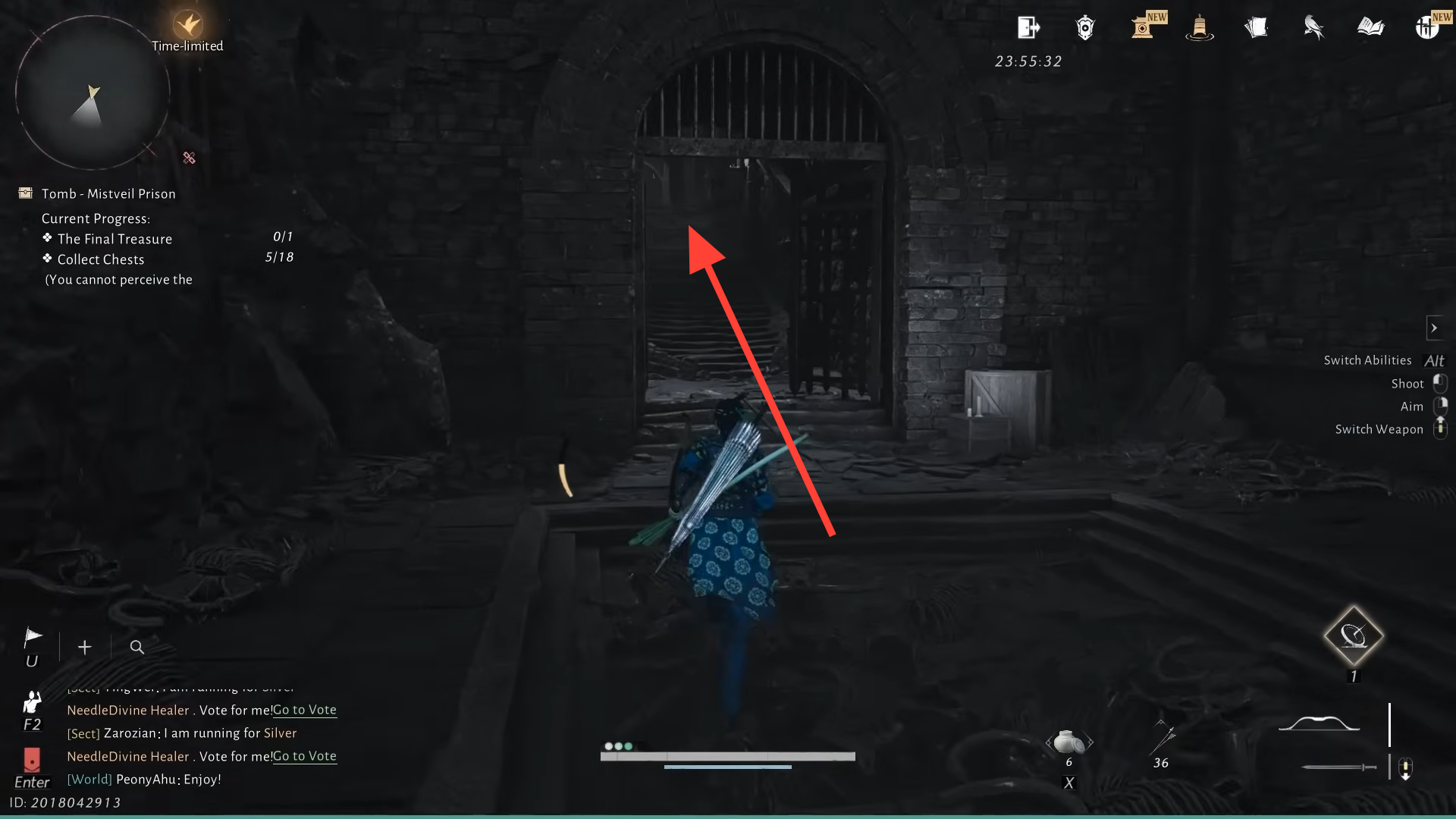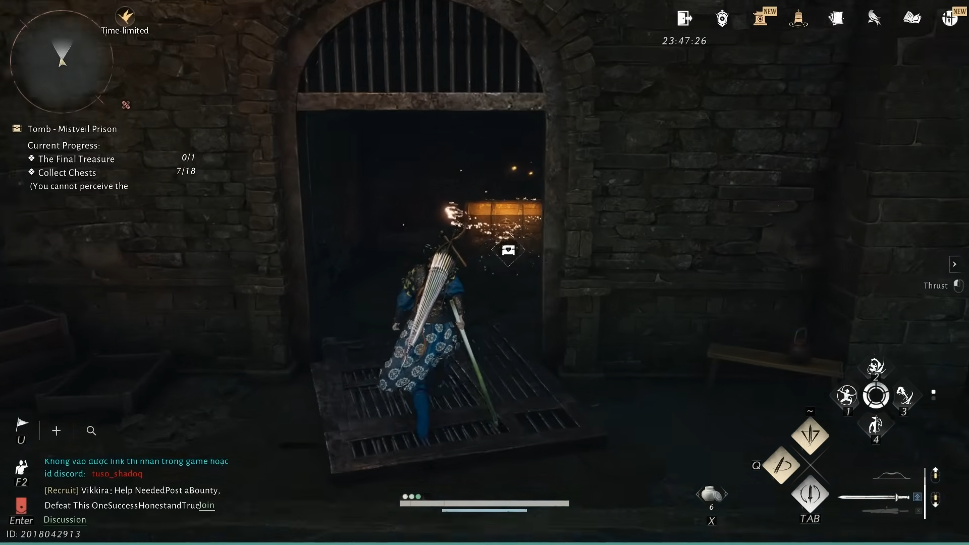 Step 5: Continue through this new opening, following the stairway and corridor lit by braziers. Deeper in, a previously blocked entrance now stands open. Behind it waits the final treasure chest for Mistveil Prison.