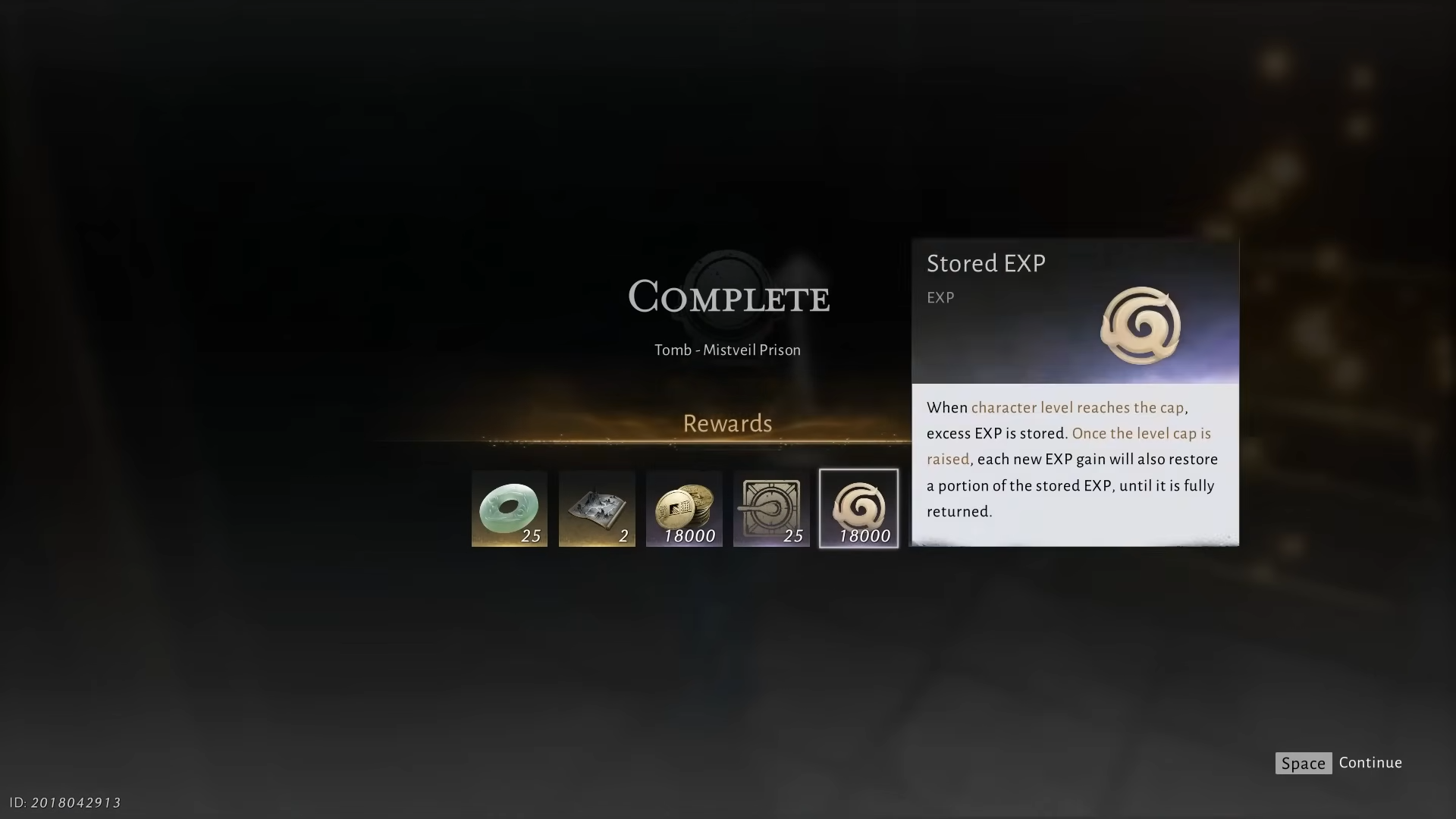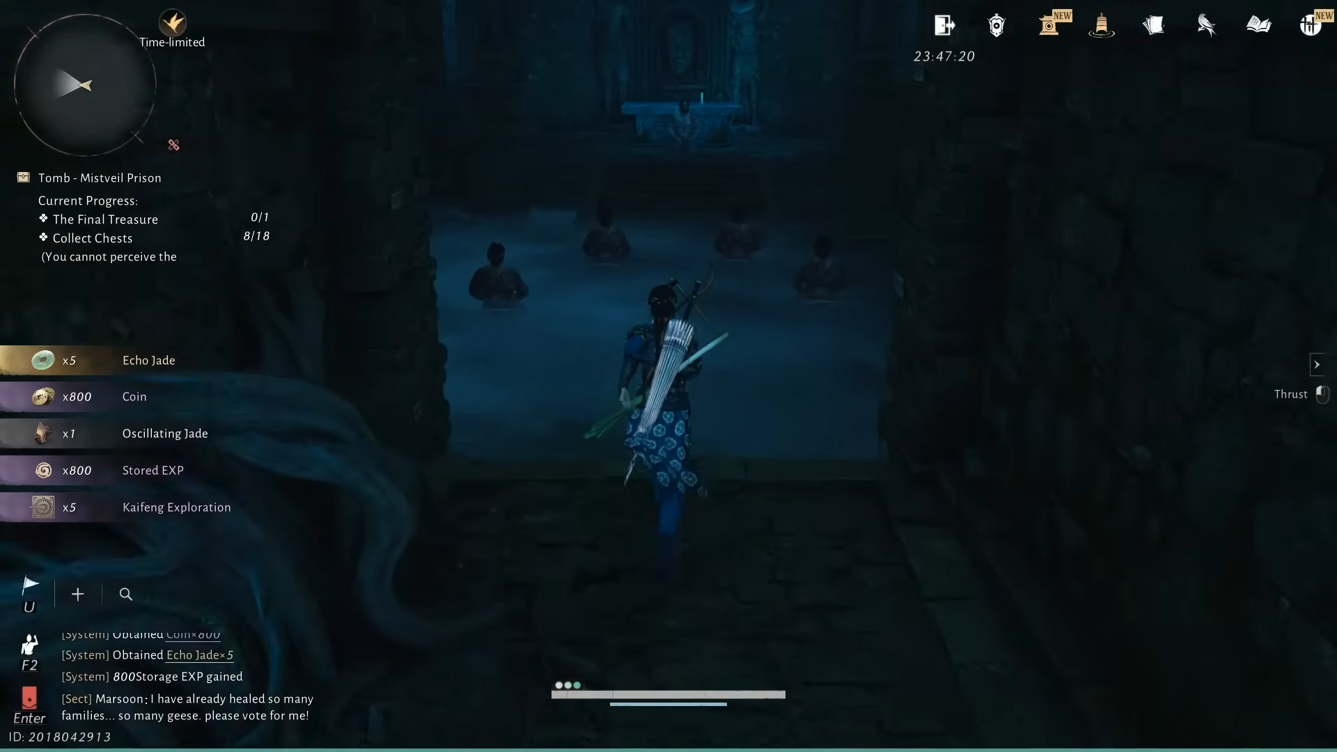 This last chest grants a fixed reward bundle: 25 Echo Jade, 18,000 Coin, 25 Kaifeng Exploration Points, 2 Medicinal Tales, a single Ebony Bone, and a large amount of EXP. The 18 smaller chests scattered through the dungeon provide varied loot and are optional from the perspective of completing the dungeon and clearing the region’s lingering mist.