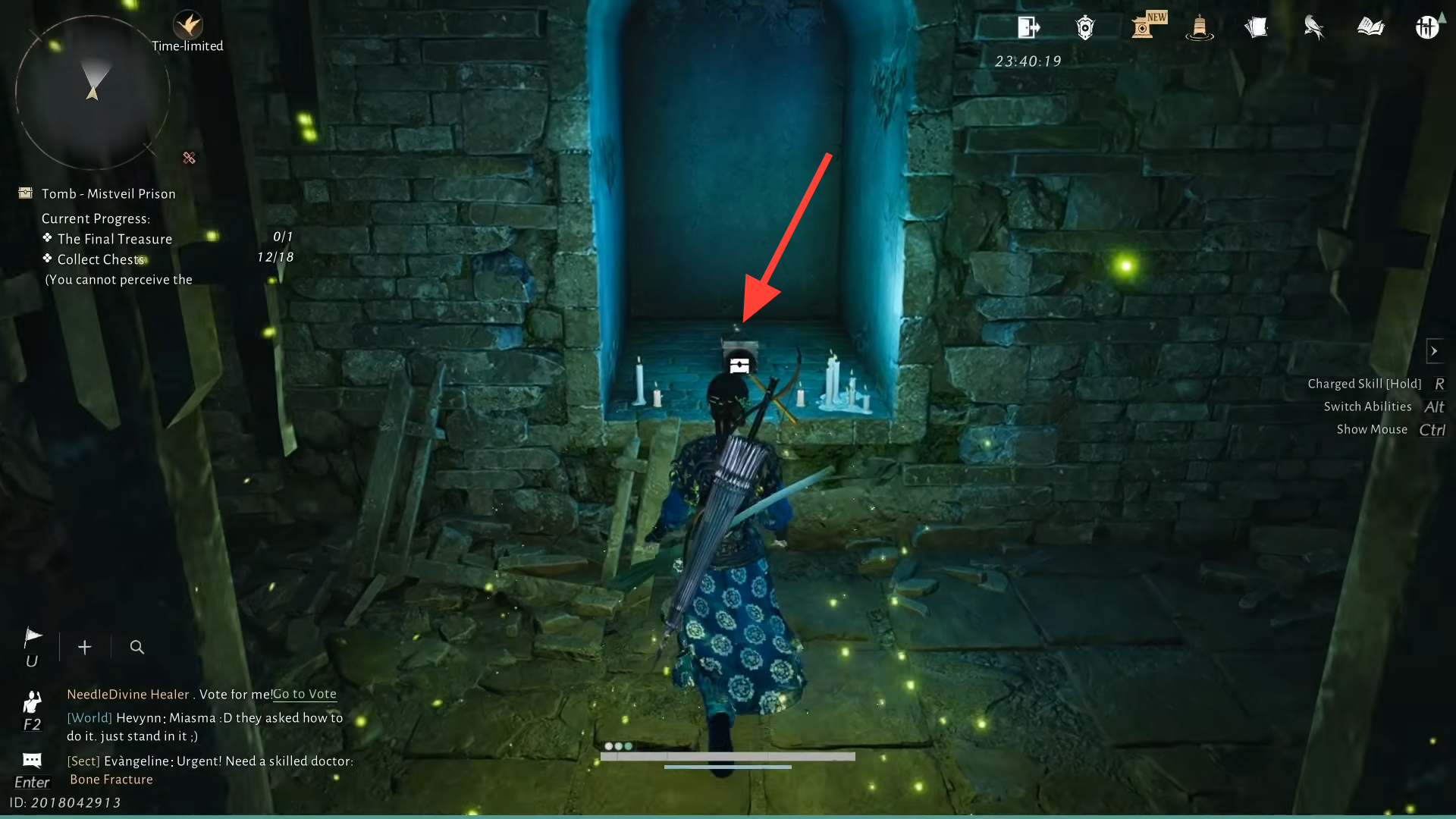 Step 2: With Miner still active, go to the red altar room again. Instead of an altar or open shaft, there is now a functioning lift. Riding this lift down leads to a small sealed chamber where the seventeenth chest sits directly in front of you.