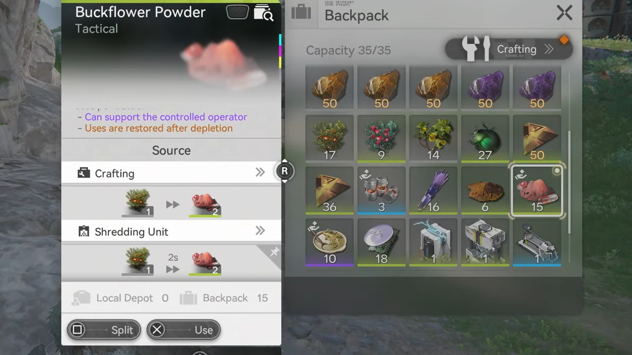 - Crafting explosives to breach a wall that blocks access to a delayed supply or route.
