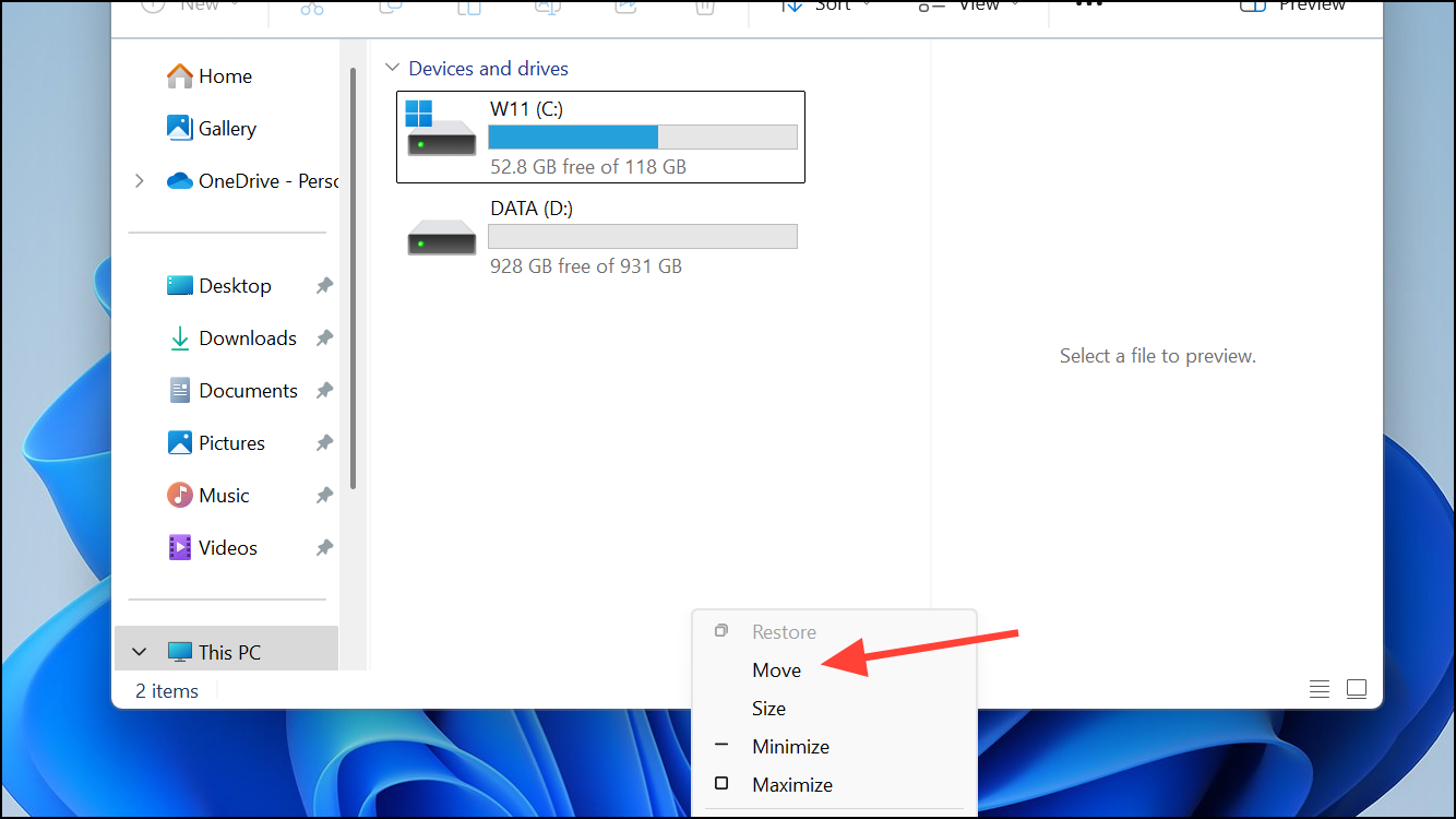 This method works for most application windows in Windows 11, except when the window is maximized. If you have PowerToys installed with the default Alt + Space hotkey assigned to PowerToys Run, you may need to disable or reassign that shortcut to use this method.