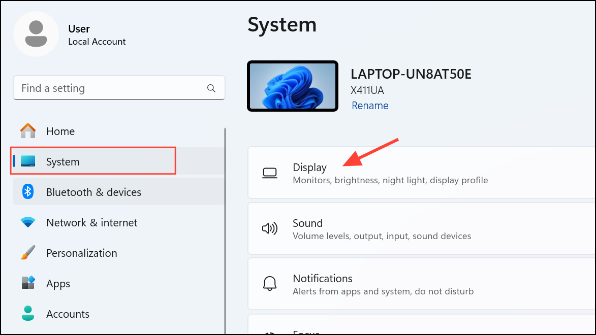 Step 1: Press Windows Key + I to open Settings, then navigate to “System” and select “Display.”