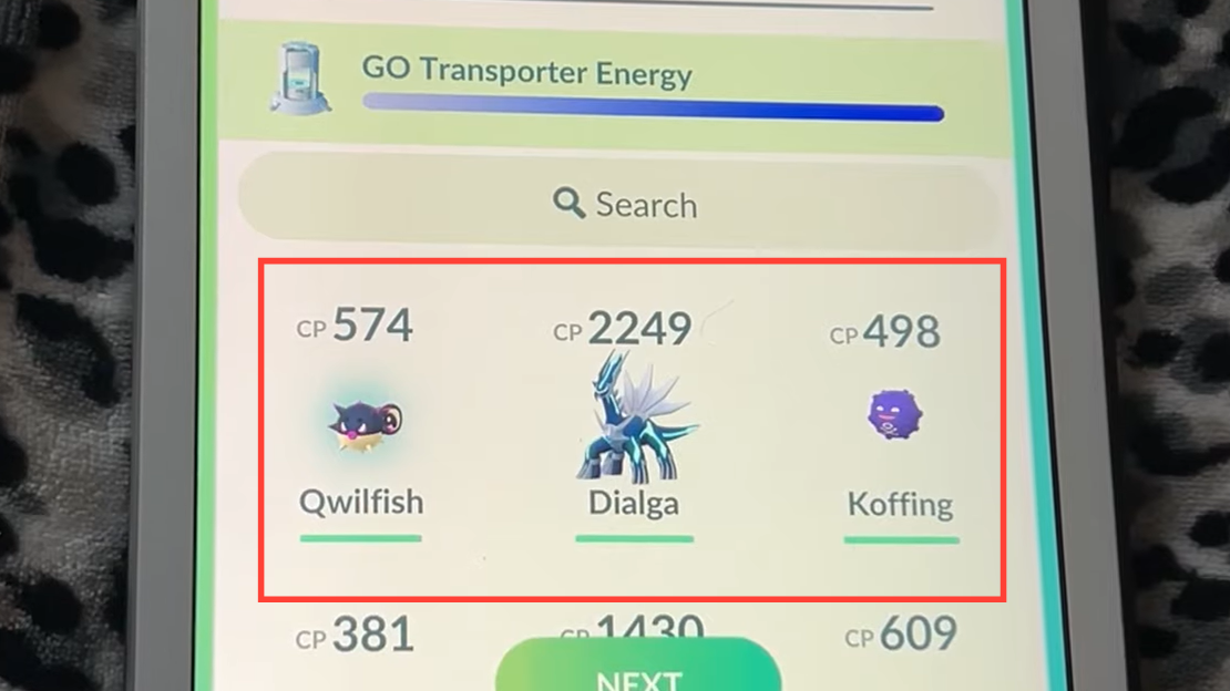 Step 3: Select the Pokémon you want to transfer. Favorited Pokémon will not appear in the selection list, so un-favorite anything you intend to send. Tap Next when your selection is ready.