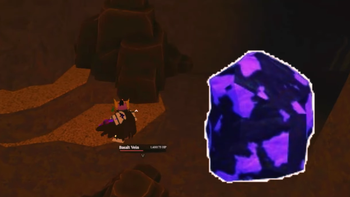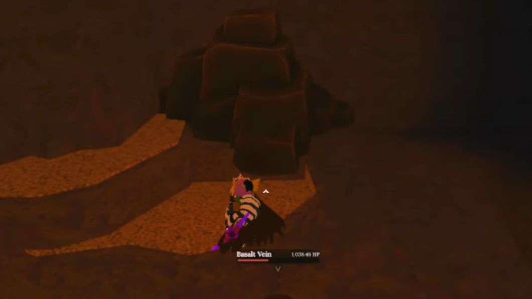 Step 4: Use your Mythril Pickaxe or any pickaxe with at least 78 base damage to break through these Basalt Veins. Behind them lies the Volcanic Depths, where multiple Basalt Veins spawn close together.