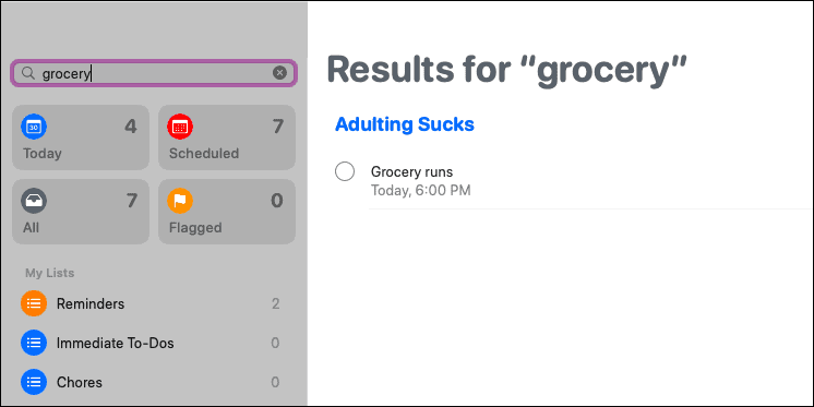 Are there a gazillion reminders and you lost track of what’s the immediate priority? Name your reminders in such a way that you can easily search for them when you forget which list they are on. You can use bits of the reminder’s name, date, location, or even the notes you’ve added and hunt the reminder down.