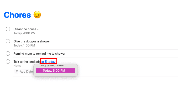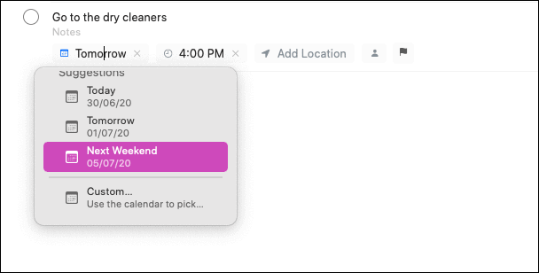 This feature is indeed a smart one. All you need to do is roughly type in the date, time, and/or location of your reminder and the Reminders app would provide you with some suggestions that the app thinks you’re thinking about.