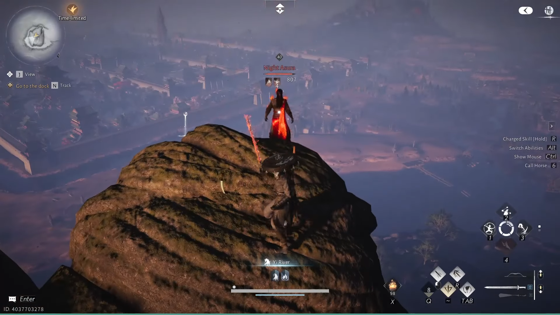 Night Asura appears as a solitary figure at the very top of the giant Buddha statue. Reaching him requires climbing all the way up the monument, so most players run into him only after some focused exploration or when following nearby sect-related clues.