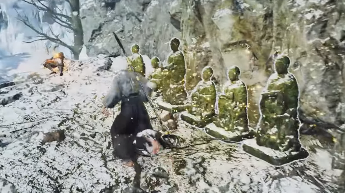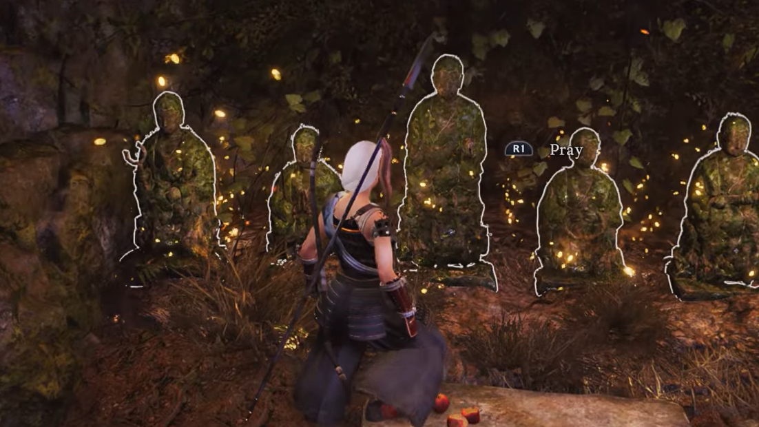 Step 4: Carry the head back up to the statues and place it on the broken one. You can now pray and collect your Jizo Merit.