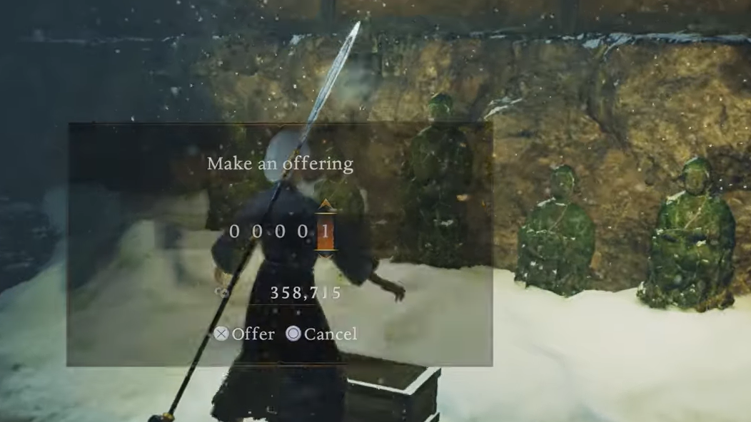 Not every statue is ready to accept your prayer the moment you find it. Some require you to track down a missing stone head — usually lying on the ground nearby or held by a Mimic enemy you need to defeat first. Others ask for a monetary donation before you can pray. The donation amount is trivial; putting in a single coin is always enough. Once you've fulfilled the requirement, interact with the statue to receive your Jizo Merit.