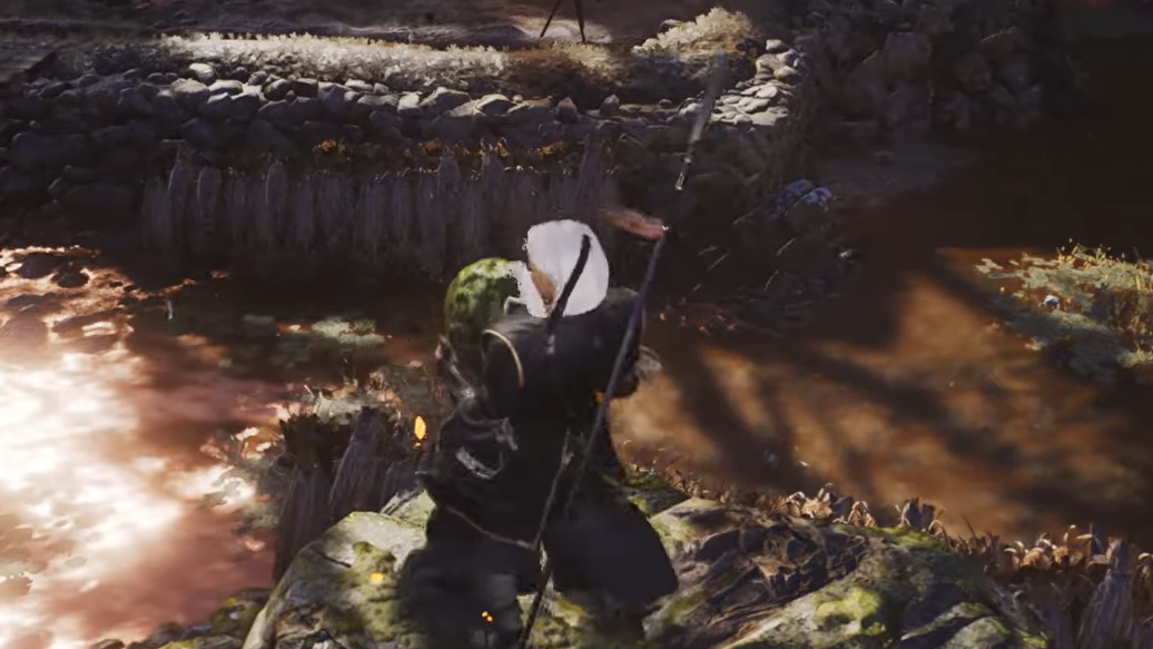 After completing the Six Jizo interaction, don't leave the Water Mill area immediately. On the opposite side of the dam from where you entered, there's a second lever. Activating it fully drains the remaining water from the mill area, revealing a ladder you can descend.