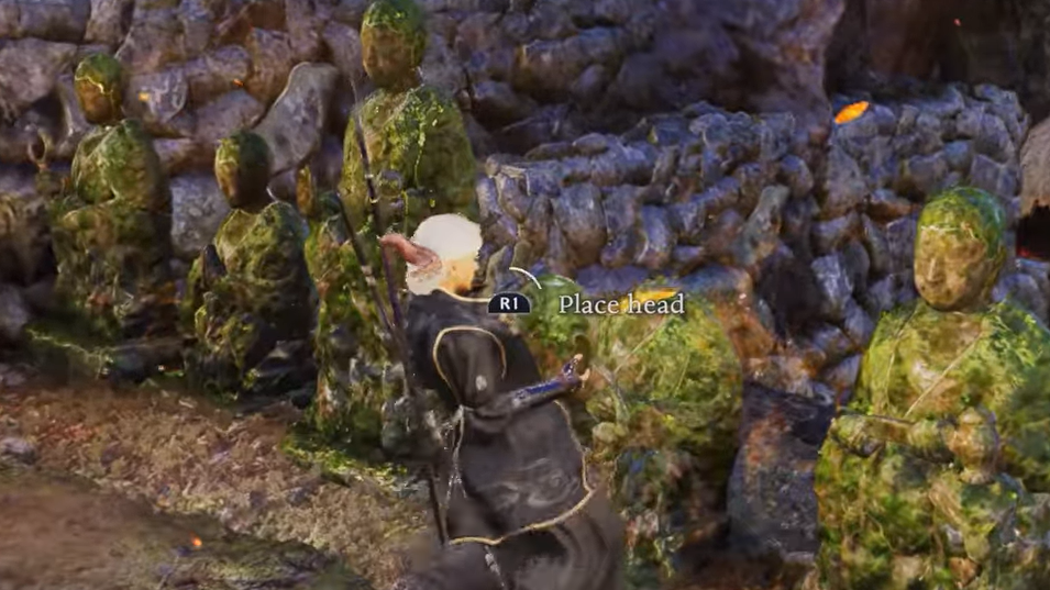 Step 4: Pick up the head and carry it back to the statues. When the prompt appears, place the head on the statue.