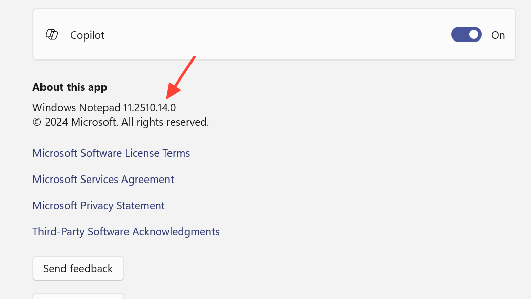 If your version is older, update Notepad from the Microsoft Store by searching for “Windows Notepad” in the store app and installing updates from the product page at apps.microsoft.com/store/detail/windows-notepad/9MSMLRH6LZF3.