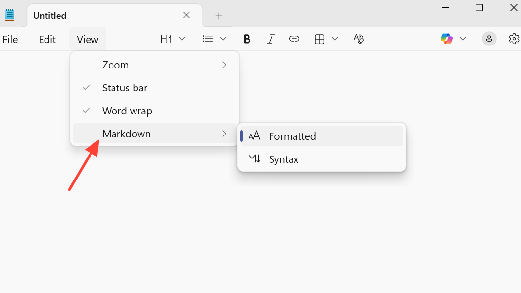 To adjust this behavior, open Notepad’s settings from the app menu and look for the control that manages formatting features. Turning formatting off hides table controls, along with other rich text options like bold and bullet lists.