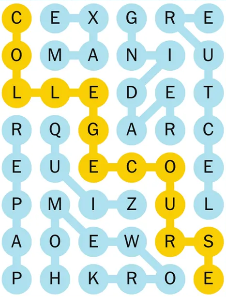Spangram (the grid-spanning phrase that encapsulates the theme): College Course (rendered in-grid without a space).
