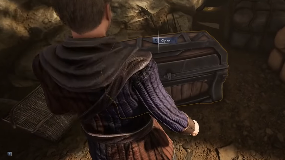 Step 2: Interact with the chest and use the key from Emmett. Inside, you’ll find three bottles of Brandy and an apple. Take everything; there is no downside to emptying it.