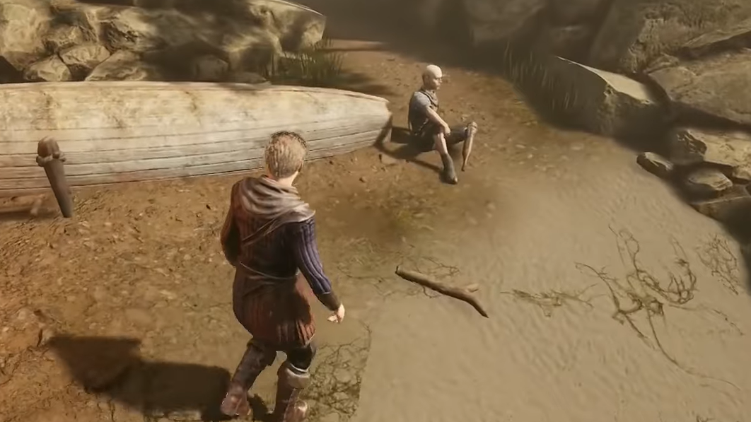 Step 1: While you’re moving between the Brandy chest and the shoreline, you’ll come across a crew member named Fish. Speak with him to start Fish Steak. He wants to spar but needs “some kind of stick” to use as a weapon.