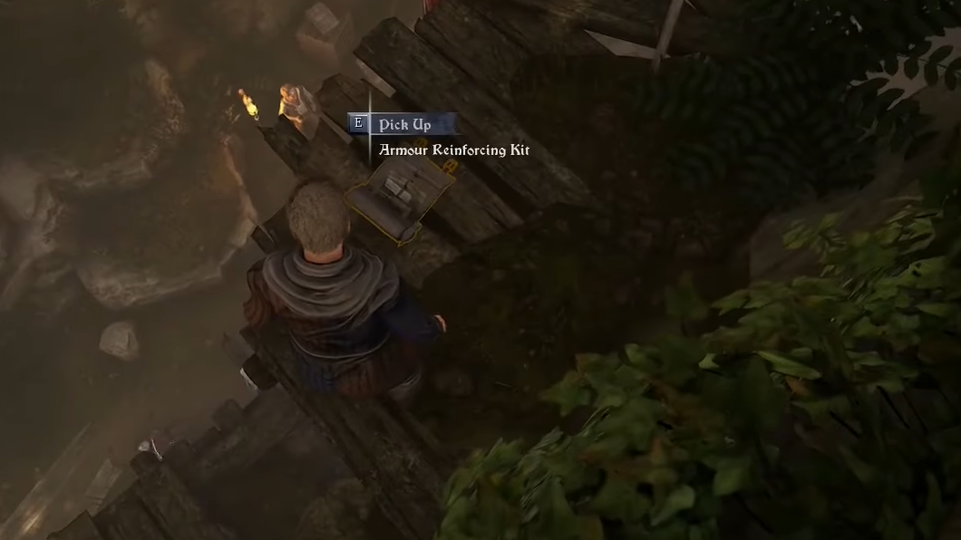 Step 6: To find the Armor Reinforcing Kit, go to the opposite side of the medical camp. Use a ladder there to climb upward, then jump across a few ledges. At the top of this short climb, you’ll find the kit resting on a rock outcrop.