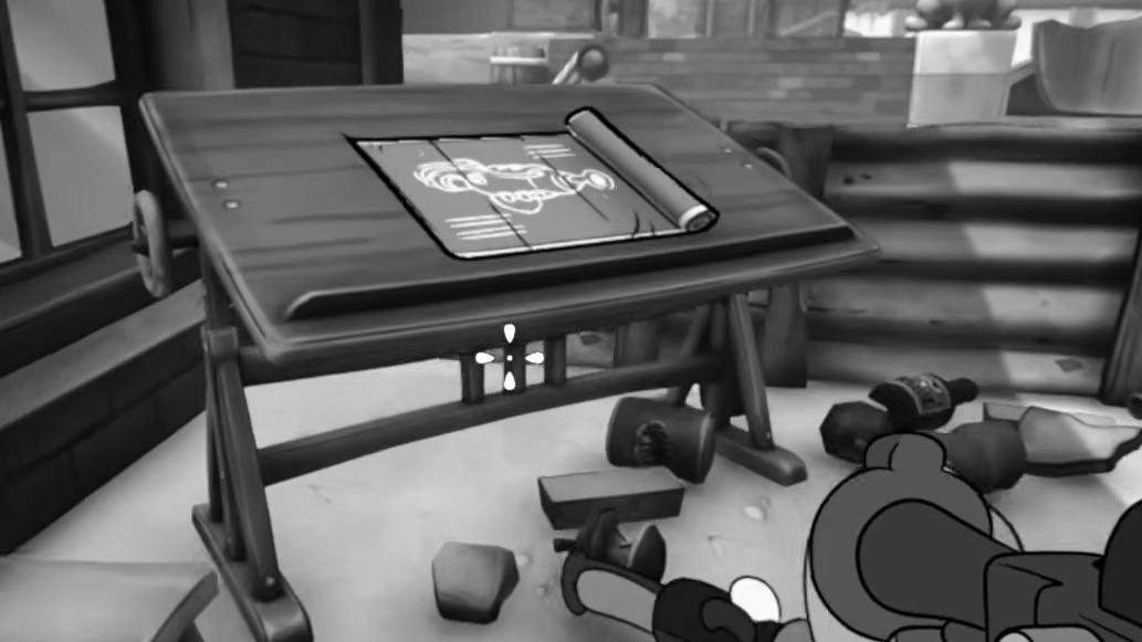 Step 5: Cross to the stairs near the Tinsel Brothers water tower. The desk at the top has a schematic. Continue west, pull the lever by the typewriter to swing a wrecking ball through the wall, then double-jump onto the wreckage to climb up.