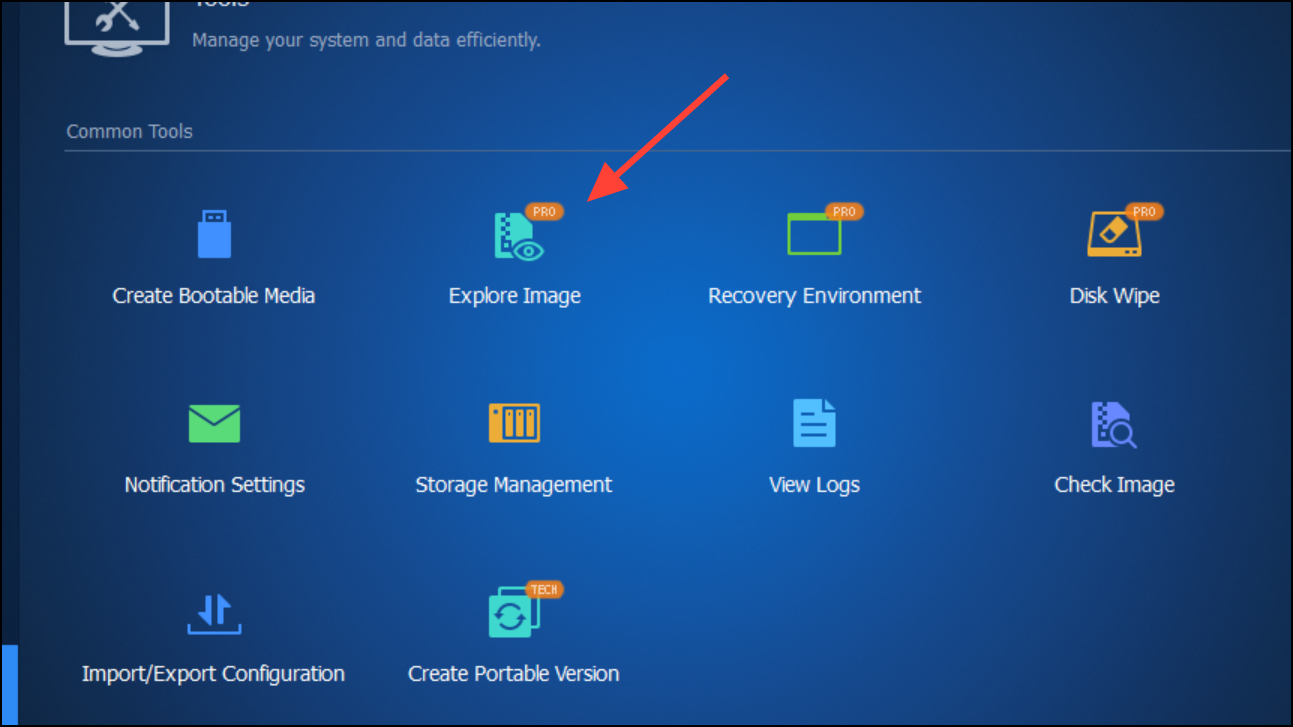Step 4: Choose Explore Image or Mount Image from the list of utilities. This tool allows you to mount the .adi file as a virtual drive.