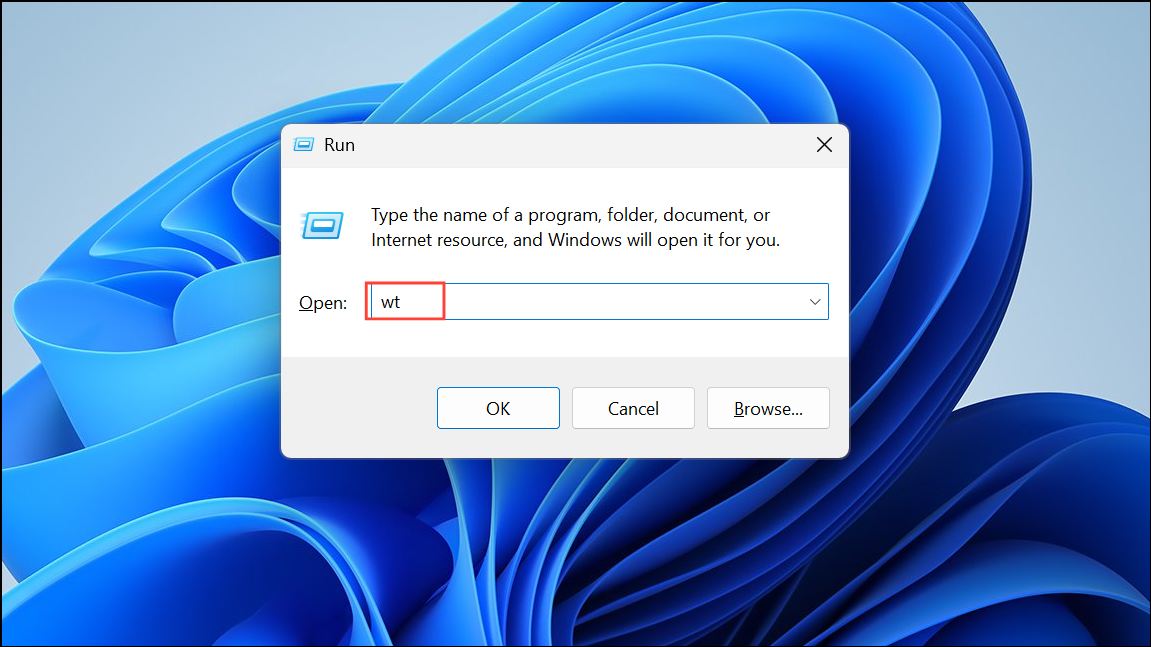 Step 3: In the dialog, enter wt.