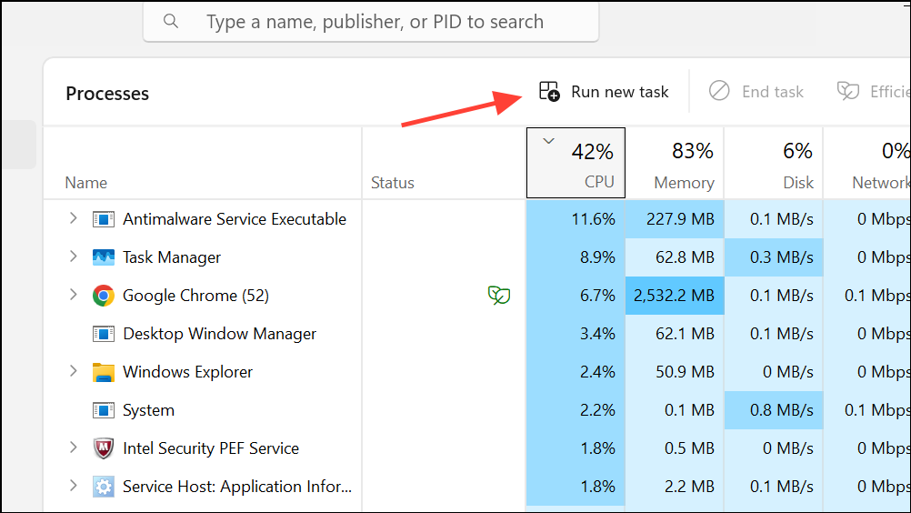 Step 2: Click File in the menu bar and select Run new task.
